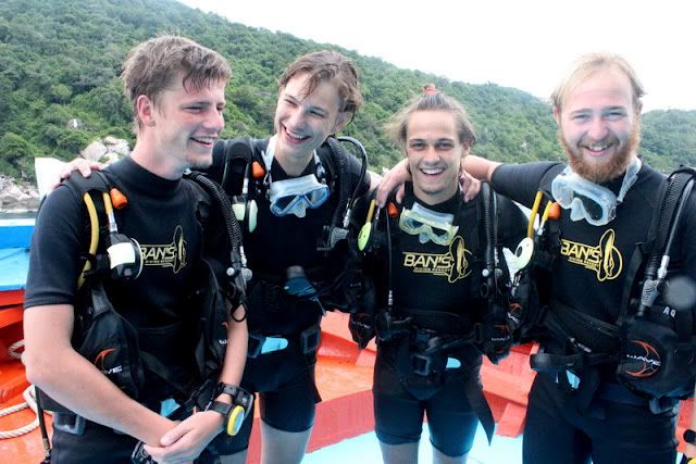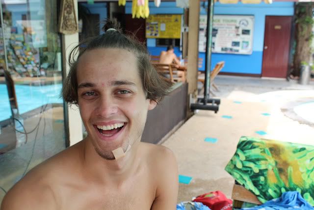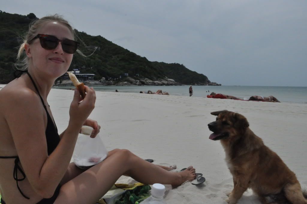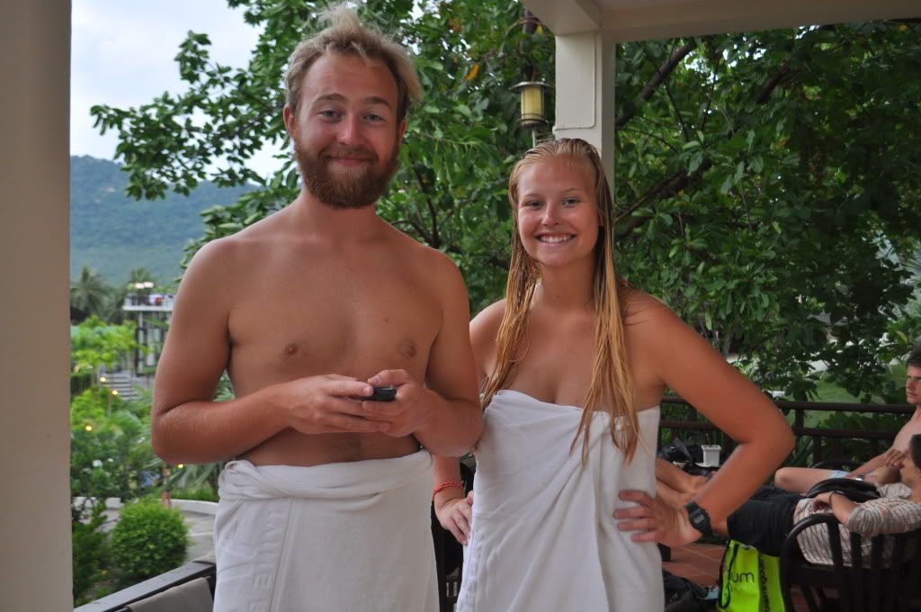 Vi ankom til Koh Phangan efter en virkelig rolig og solskinsrig bådtur, hvor Nicolai fik smurt sig lidt sporadisk; hans tan blev lidt derefter (se billede nedenfor). Hovedformålet med at tage hertil var en af verdens største strandfester, full moon party som finder sted hver måned. Det går hovedsageligt ud på neontøj, bodypaint og buckets. Selv om vi rejser i lavsæsonen deltog der ca. 15.000 glade mennesker, da vi var der, det var vildt! Ellers havde vi nogle rolige dage på øen, som blev brugt på stranden med bøger og kortspil.