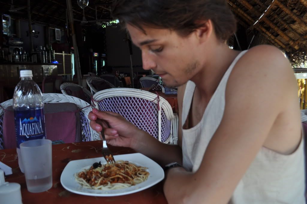 Betty og Joe som vi moedte en af dagene. Paa vejen hjem fra stranden styrtede de foran os paa scooteren i deres badetoej. Her er Joe nogle dage efter.