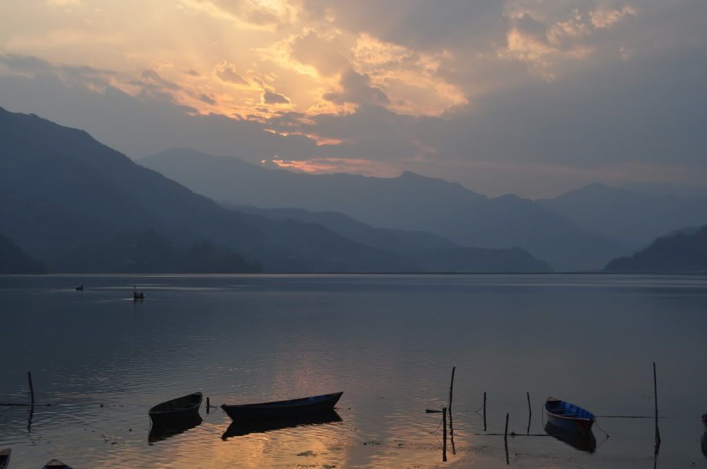 Vi kom endelig ud af Besisahar, videre til Pokhara. Tilbage til pizza, salat og oel, selvom vi mest af alt havde lyst til at hoppe tilbage paa Annapurna-trekket. Esben var lidt slatten de foerste dage i Pokhara, men vi kom da ud paa en kayaktur. Ellers slappede vi bare af og ladede op til naeste stop: Lumbini.